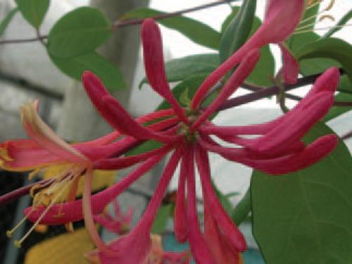 5~6월에 잎 겨드랑이에서 붉은색 꽃이 피며 9~10월에 둥근 열매가 검게 익는다.