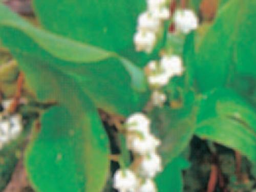 5월에 잎과 함께 나온 가느다란 꽃줄기는 20~30cm 높이로 잎보다 짧으며 은방울 모양의 흰색꽃이 조롱조롱 매달려 핀다.